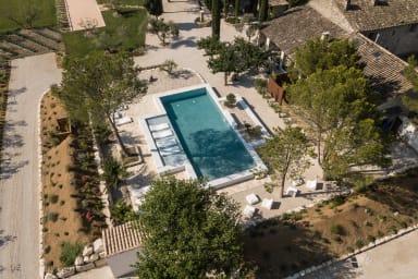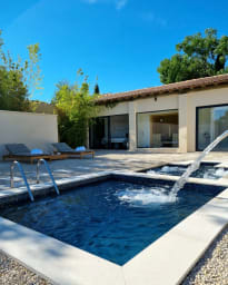 Relish this renovated farmhouse's perfect blend of Provencal charm and modern luxury. The outstanding holiday haven features five ensuite bedrooms, offering a hotel-like experience. Relax in the stylish swimming pool, the outdoor jacuzzi or the sauna. Guests love the contemporary decor and the property's proximity to L’Isle-sur-la-Sorgue and the Luberon's famous hilltop villages.