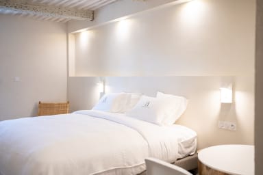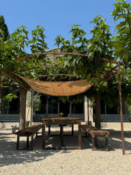 The annexe is the property's former silk farm. It provides 55m2 of space for a comfortable stay for 2 (or 4 upon request). Revel in the super king-size bed (2x2m), a cosy lounge area with a convertible sofa, and a private terrace next to the property's eldest resident – a 200-year-old mulberry tree.